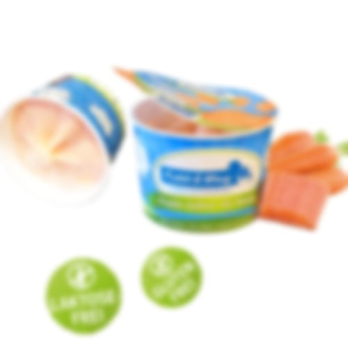 Zusammensetzung: laktosefreier Joghurt , Agavendicksaft, Wildlachs, Karotten, Rapsöl, Leinöl, Inulin, Guarkernmehl, JohannisbrotkernmehlAnalytische Bestandteile: 4,2% Rohprotein, 5,4% Rohfett, 0,6% Rohfaser, 0,7% Rohasche, 73,1% FeuchtgehaltAufbewahrung: bei – 18 °CNettovolumen: 90 ml / Becher