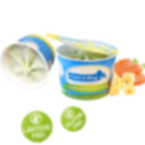 Zusammensetzung: Laktosefreier Joghurt , Bio-Agavendicksaft, Käse, Birne, Spirulina, Rapsöl, Leinöl, Inulin, Guarkernmehl, JohannisbrotkernmehlAnalytische Bestandteile: 4,2% Rohprotein, 5,7% Rohfett, 0,3% Rohfaser, 0,6% Rohasche, 72,6% FeuchtgehaltAufbewahrung: bei – 18 °CNettovolumen: 90 ml / Becher